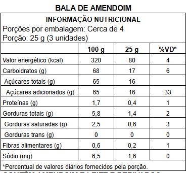CONTÉM AMENDOIM E LEITE E DERIVADOS. PODE CONTER AMÊNDOA, AVELÃ, CASTANHA-DE-CAJU, CASTANHA-DO-PARÁ E NOZES. CONTÉM GLÚTEN. CONTÉM LACTOSE.