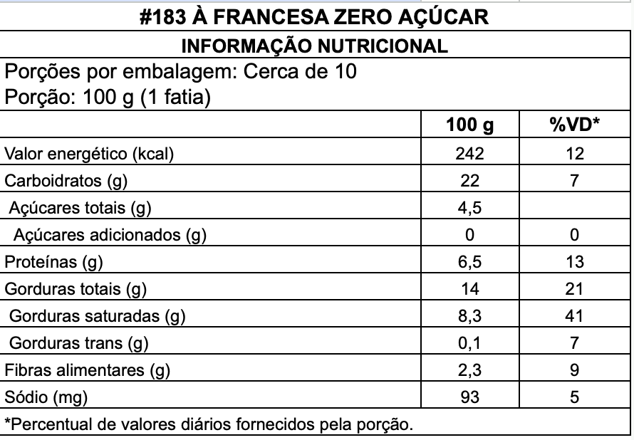 CONTÉM FARINHA DE TRIGO INTEGRAL, LEITE E DERIVADOS, OVOS E SOJA E DERIVADOS. PODE CONTER AMÊNDOA, AMENDOIM, AVEIA, AVELÃ, CASTANHA-DE-CAJU, CASTANHA-DO-PARÁ, CENTEIO, CEVADA, NOZES E LÁTEX NATURAL. CONTÉM FENILALANINA. CONTÉM GLÚTEN. CONTÉM LACTOSE. EDULCORANTES: CICLAMATO DE SÓDIO, SACARINA SÓDICA, ASPARTAME E ACESULFAME K E ESTÉVIA. CONTÉM AÇÚCARES PRÓPRIOS DOS INGREDIENTES. PORTADORES DE DIABETES OU PESSOAS COM RESTRIÇÃO DE AÇÚCARES CONSULTE UM NUTRICIONISTA. CONSUMIR COM MODERAÇÃO, NO MÁXIMO UMA PORÇÃO POR DIA.
