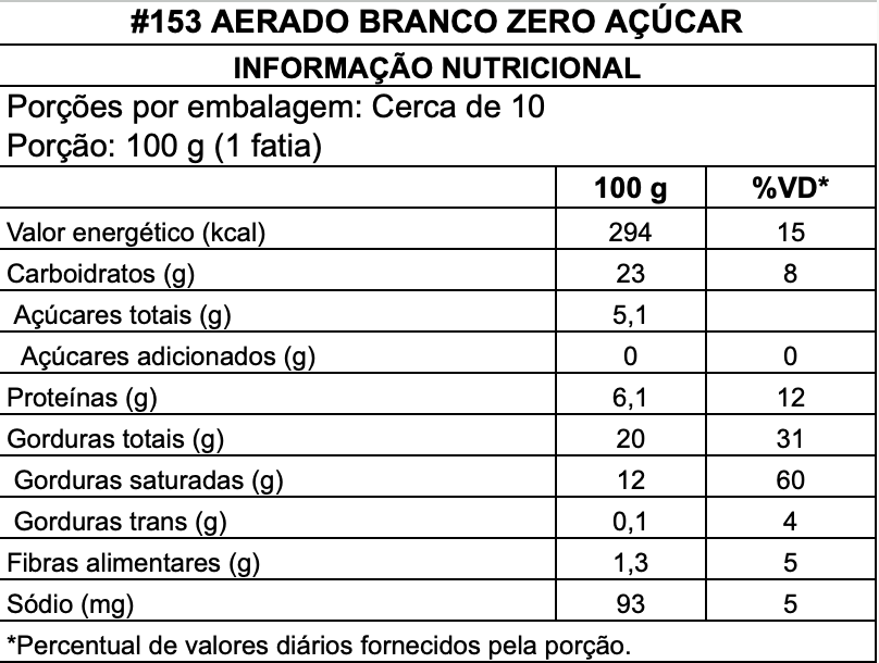 Aerado Branco Zero Açúcar - Bolo Inteiro