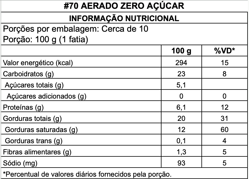 CONTÉM FARINHA DE TRIGO INTEGRAL, LEITE E DERIVADOS E OVOS. PODE CONTER AVEIA, CENTEIO, CEVADA E SOJA E DERIVADOS. CONTÉM FENILALANINA. CONTÉM GLÚTEN. CONTÉM LACTOSE. EDULCORANTES: CICLAMATO DE SÓDIO, SACARINA SÓDICA, ASPARTAME E ACESULFAME K E ESTÉVIA. CONTÉM AÇÚCARES PRÓPRIOS DOS INGREDIENTES. PORTADORES DE DIABETES OU PESSOAS COM RESTRIÇÃO DE AÇÚCARES CONSULTE UM NUTRICIONISTA. CONSUMIR COM MODERAÇÃO, NO MÁXIMO UMA PORÇÃO POR DIA.