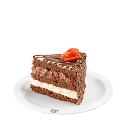 Bolo de massa de chocolate, recheios de mousse de chocolate e brigadeiro, cobertura de mousse de chocolate, raspas de chocolate ao leite, chocolate granulado e cerejas (decorativas).