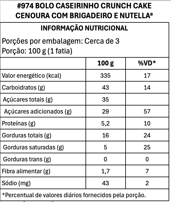 Bolo Caseirinho Crunch Cake Cenoura com Brigadeiro e Nutella