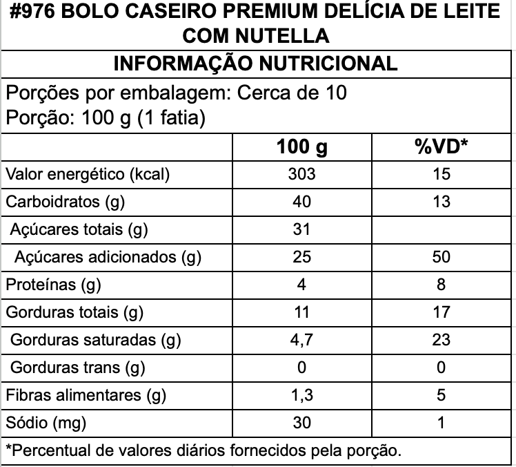 Caseiro Premium Delícia de Leite com Nutella - Bolo Inteiro