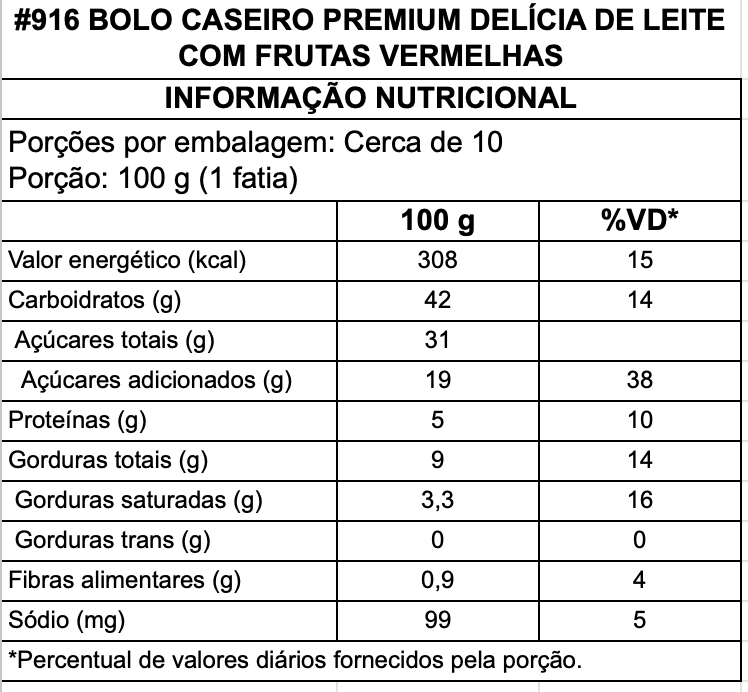 Caseiro Premium Ninho com Frutas Vermelhas - Bolo Inteiro