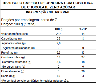 Cenoura com Cobertura de Brigadeiro Zero Açúcar