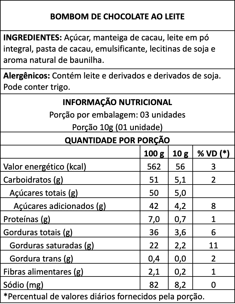 CONTÉM LACTOSE. NÃO CONTÉM GLÚTEN. ALTO EM AÇÚCARES ADICIONADOS E GORDURAS SATURADAS. ALERGÊNICOS: CONTÉM LEITE E DERIVADOS E DERIVADOS DE SOJA. PODE CONTER TRIGO.