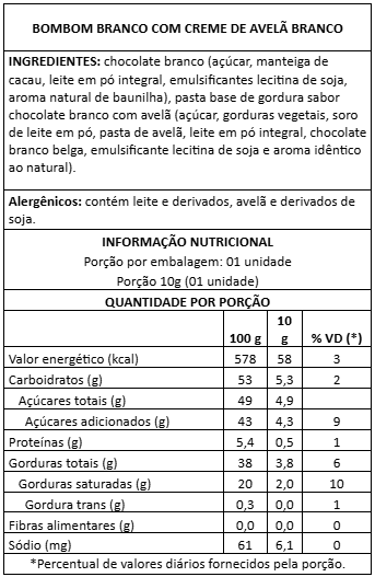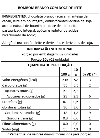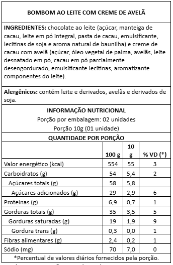 Contém Glúten e Lactose. Alérgicos: contém farinha de trigo, leite e derivados, ovos. Pode conter amendoim, nozes, castanha de caju, amêndoa e avelã.