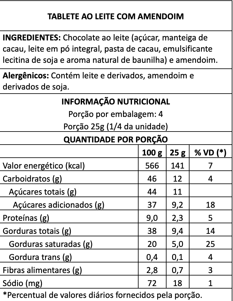 Tablete Com Amendoim 100g