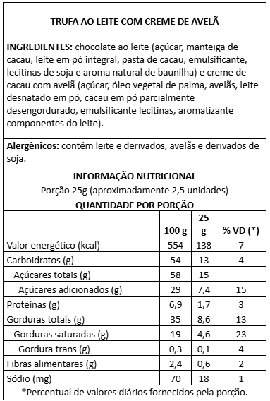 Trufa Ao Leite Com Creme De Avelã E Cacau 10g
