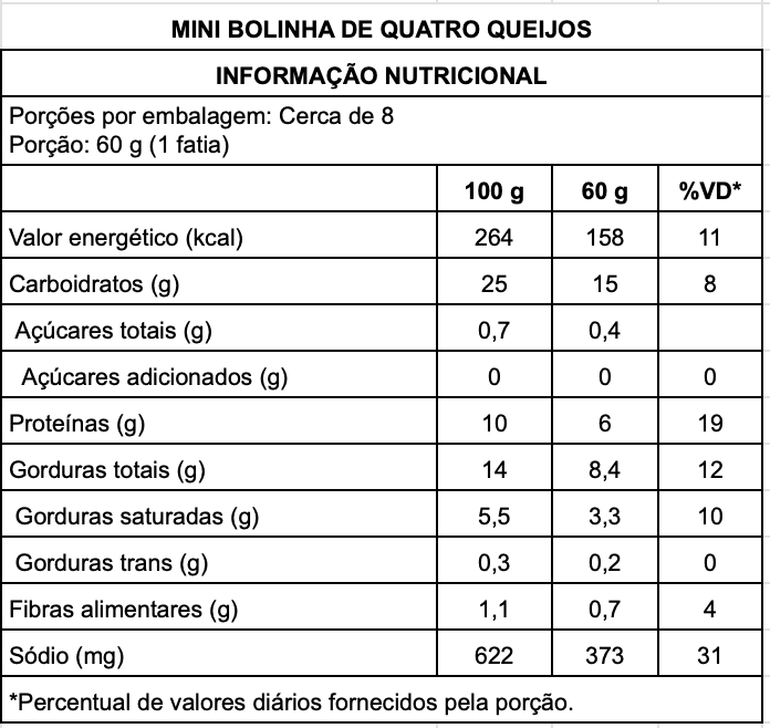 Mini Bolinha 4 Queijos