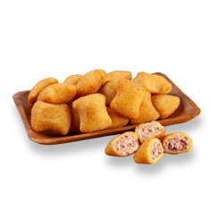 Massa macia e levemente temperada, recheio de frango desfiado com temperos especiais.